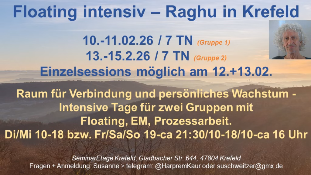 Die Selbsterfahrungsgruppen sind für alle Menschen geeignet, die sich mit den Dynamiken in zwischenmenschlichen Beziehungen und was das Alles mit (Entwicklungs-)Trauma zu tun hat, beschäftigen möchten. Die Inhalte und Übungen basieren auf den Erkenntnissen der Polyvagaltheorie (Stephen Porges), Somatic Experiencing (SE von Peter Levine) und NARM (Larry Heller). Auch einige Elemente aus der Floating Traumatherapie (nach Gopal) fliessen meist mit ein- sofern es sich nicht sowieso um ein reines Floating- Event handelt. Mein Herzensanliegen ist es dabei einen Raum zu öffnen, in dem alle mit dem willkommen sind, was gerade da ist. Wir kreieren einen sicheren Rahmen, indem es möglich ist, dich gehört und gesehen zu fühlen. Dabei geht es um ehrlichen Austausch in einer Gruppe, authentische Begegnungen und stabilisierende Erfahrungen um Traumafolgen zu überwinden und Beziehungsfähigkeit zu stärken. Die Teilnahme ist nicht empfohlen für Menschen mit einem (sehr) instabilen Nervensystem und manchen psychischen Erkrankungen. Wenn Du Dir nicht sicher bist, sprich uns gerne an.